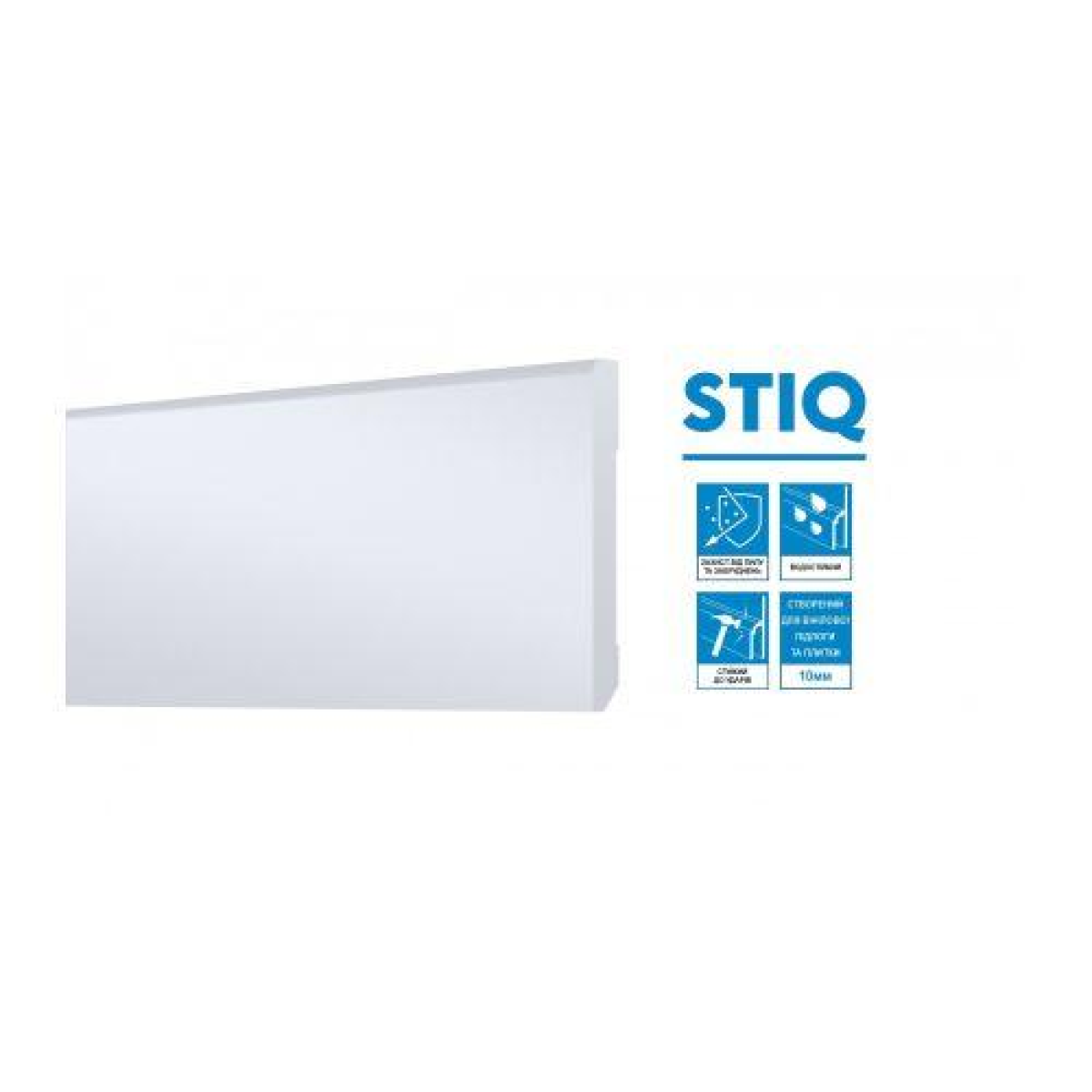 STIQ товщиною всього 10 мм створює тонкий міст між підлогою та стінами. Гнучкий, водонепроникний, пило- та брудовідштовхуючий.STIQ виробляється без ПВХ, що позитивно впливає на довкілля.